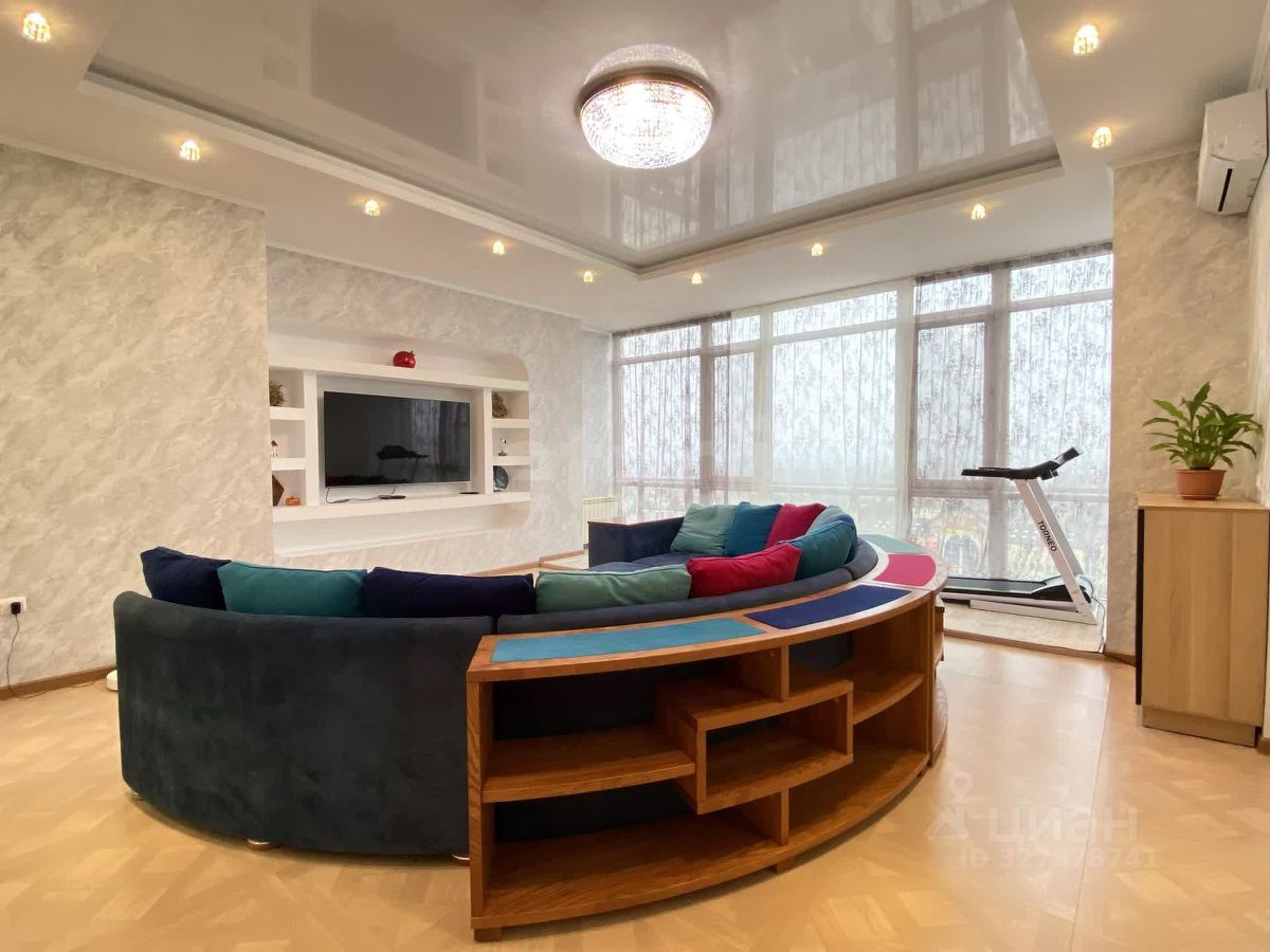 - Гостиная 38кв.м с панорамными окнами и шикарным видом на город и Волгу.