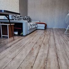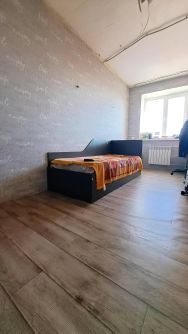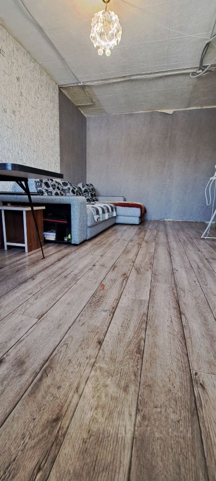 Окна выходят во двор, обеспечивая тишину и спокойствие. В квартире выполнен косметический ремонт, что позволяет сразу въехать и жить. В гостиной установлен удобный диван и стол, создающие комфортное пространство для отдыха. Из мебели также имеются шкафы для хранения вещей. На полу уложен ламинат, который выглядит свежо и современно. Балкон застеклен, что добавляет дополнительное место для хранения или отдыха. Санузел совмещенный, оформлен в нейтральных тонах.