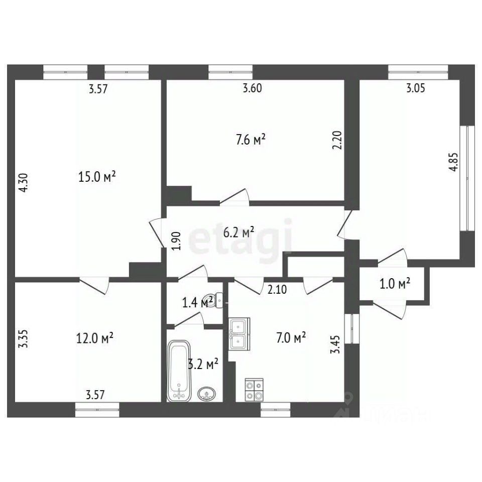 Сама квартира отличается надежностью и продуманной инженерией. Высокие потолки около трех метров создают ощущение простора и светлоты. Установлены современные пластиковые окна, двухконтурный котел обеспечивает независимое отопление и горячую воду, все коммуникации оснащены индивидуальными счетчиками. Практичный совмещенный санузел отделан кафелем, кухня — просторная, что позволяет комфортно разместить обеденную зону. Чугунные радиаторы гарантируют эффективный обогрев в холодный сезон.