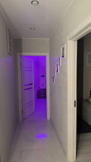 По всей квартире грамотно распределено освещение по зонам, розетки выведены именно там, где они нужны для удобства в повседневной жизни.