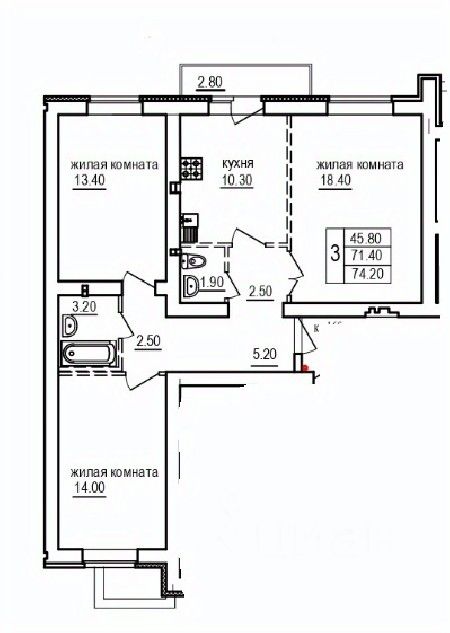 74,2 м²