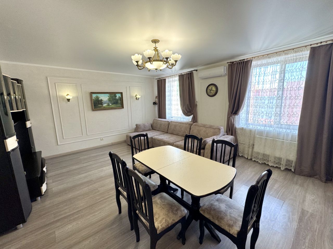Покупателю остаётся значительная часть мебели и техники: встроенная кухня, обеденная зона, диваны, встроенные шкафы-купе, мебель в спальне - двуспальная кровать, шкаф и трюмо с зеркалом. Квартира полностью готова для проживания - можно заехать сразу после сделки без дополнительных вложений.
