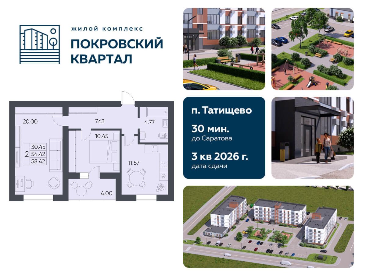 Продаётся 2-комнатная квартира в строящемся доме (Дом 1), срок сдачи: III-кв. 2026, общей площадью 58.42 кв.м., на 3 этаже. Новый жилой комплекс от застройщика СЗ "Орион" расположен по адресу: Саратовская область, рабочий посёлок Татищево, Михайловская улица, 13