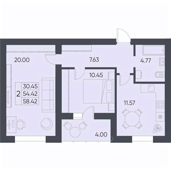 58,42 м²
