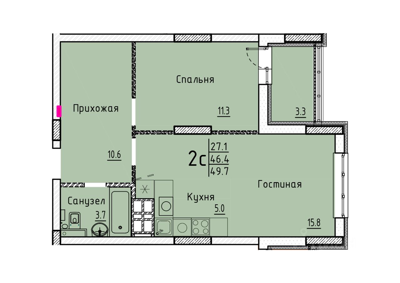 Жилая площадь27,1 м²