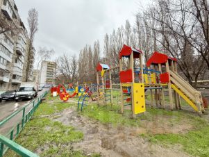 Окна выходят во двор, где есть большая детская площадка. В летний период во дворе очень зелено - много цветов, кустарников, деревьев, но и для машин имеются места как во дворе, так и рядом на платной стоянке.