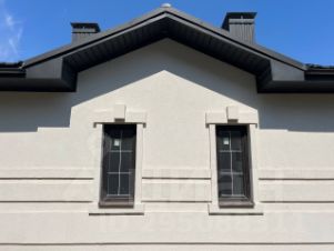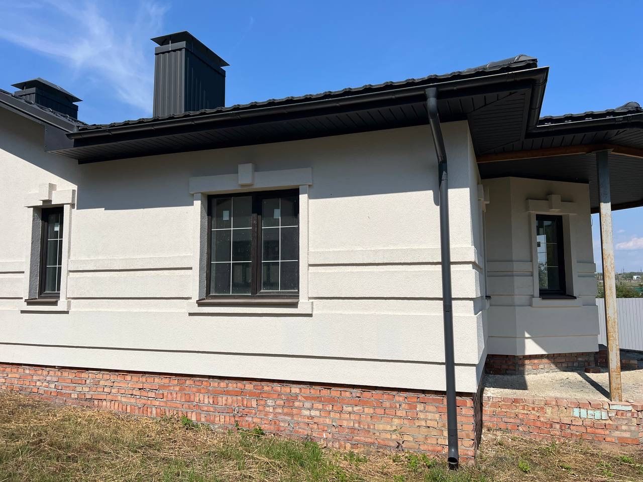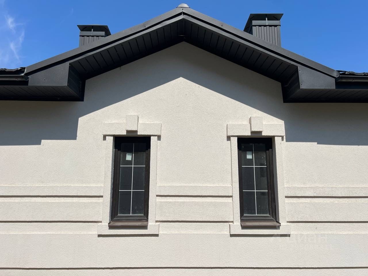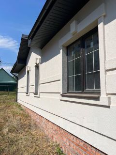 •Окна пластиковые ламинированные под дерево (толщина профиля 70 мм). По всему периметру дома на крыше смонтирована ливнёвка!