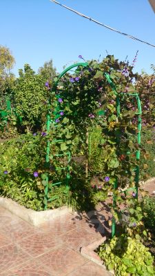 Сад - плодовые деревья (яблони, слива, черешня красная, черешня белая, вишня, абрикос, виноград, малина, ежевика, тутовник, калина, рябина, орех, боярышник).