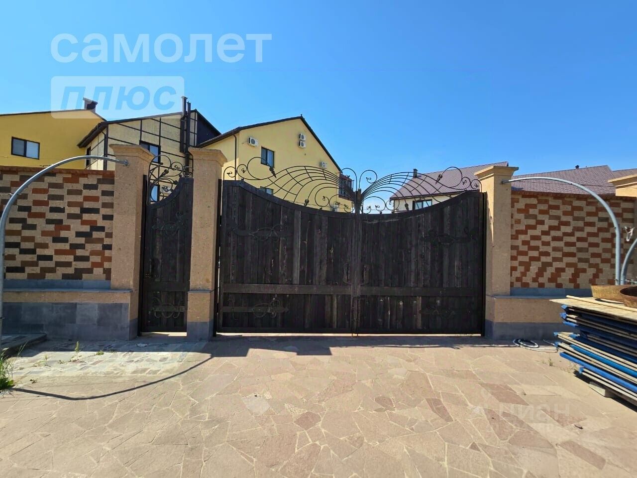 Участок с 3-х сторон огражден забором, готовая площадка под несколько машин выложена камнем.На участке имеются плодовые деревья, виноград, территория ровная, без перепадов.