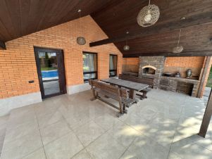 Баня 45 кв.м., кирпичная, кровля гибкая черепица, стоит на бетонной подушке. Заведены все коммуникации, также имеется тёплый пол. Состоит из прихожей, комнаты отдыха, раздевалки, парной, душевой и санитарного узла. Имеется небольшой хоз. блок с отдельным входом. К бане пристроена большая беседка с мангальной зоной.