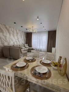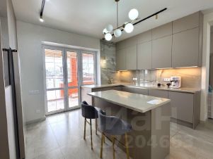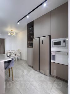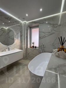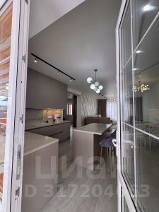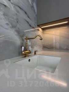 Встроенный кухонный гарнитур оборудован самой современной бытовой техникой, столешница из натурального камня, итальянская сантехника, трековое и точечное освещение. Площадь кухни позволяет разместить остров и столовую группу.