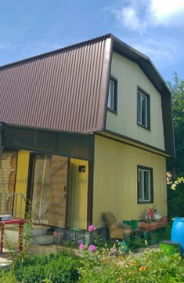На участке 2-х этажный дом (регистрация в Гос. реестре). Так же есть баня, душ, сарай, туалет, стол с устанавливаемым навесом, качели и ёмкость для воды для полива. Внутри участка у дома площадка и навес для автомобиля.