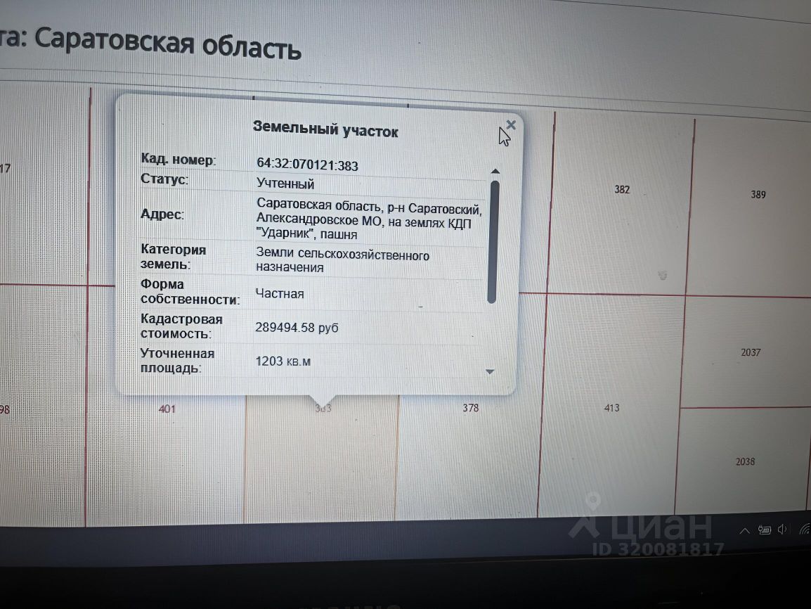 Кадастровый номер участка 64:32:070121:*** указал продавец