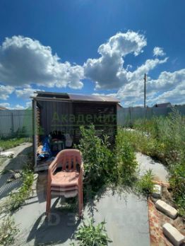 На участке установлен морской контейнер с инструментом, к нему пристроена уютная беседка.