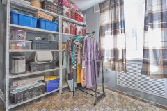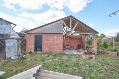 - Хозблок оснащен удобными металлическими стеллажами, есть крытая зона для барбекю и погреб с лестницей.