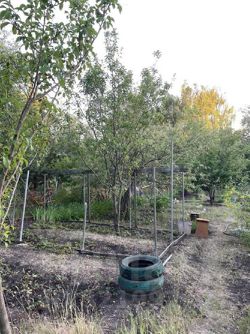 В саду много плодово-ягодных деревьев: яблони, груша, абрикосы разных сортов, вишни, сливы обычная и жёлтая, торн и др.