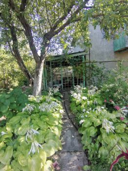 Дом крепкий, двухэтажный, из блоков, цельный, без пристроек, оштукатурен, подготовлен под покраску. Этажи высокие. На первом этаже коридор, большая кухня - гостинная и спальня, на втором этаже холл, из которого выходит балкон и две хорошие спальни. Чердак отдельно, перекрыт. В доме электричество, поменяли розетки на 1 этаже, дом требует косметического ремонта. Участок ровный, солнечный. Много плодовых деревьев: 3 яблони, груша, черешня, слива, 2 абрикоса, виноград. Многолетние кусты и цветы: калина Бульдонеж, сирень, розы, туи, малина, клубника, смородина, жимолость. Земля плодородная, огород отличный. На участке есть баня кирпичная, печь хорошая, мощная, туалет через стенку, тёплый. Хозблок большой и новый. Вода поливная. Газ в перспективе, уже подают заявки. Торг!