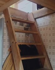 На первом этаже расположены 2 комнаты, прихожая и кухня. На втором - большая комната мансардного типа.