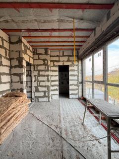 Три спальни на втором этаже: взрослая спальня с панорамным окном и гардеробной, две детских комнаты и отдельный санузел. Между этажами БЕТОННАЯ лестница с разводкой под теплый пол!