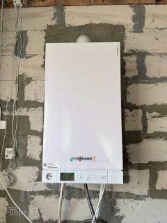 В доме установлен двухконтурный котел Vissmann, разведенная временная система отопления.