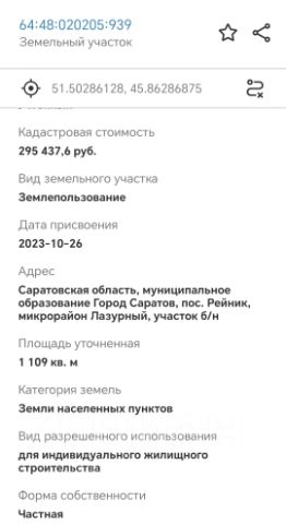 Кадастровый номер 64:48:020205:939.
