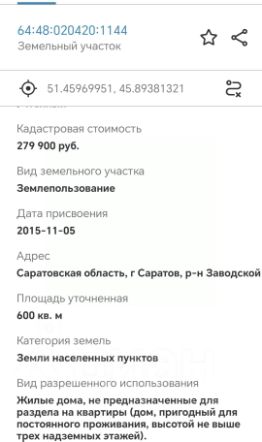 К вашему вниманию продаётся земельный участок 6 соток. Кадастровый номер 64:48:020420:1144