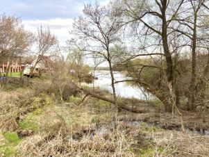 Участок находится на возвышенности от пруда,