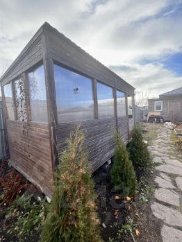 На участке имеется тёплая строительная бытовка 5*2.40 и деревянная беседка*2.40.