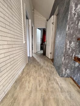 Дом 2 этажа, на первом этаже кухня студия с гостиной , спальня, ванная комната, на 2 этаже 3 спальни, санузел.