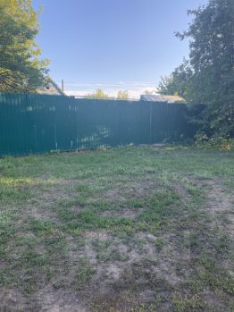 - Площадь участка — 5,5 соток, ровный, прямоугольной формы, забор из полипрофиля.