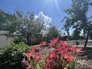 Дом кирпичный, добротной постройки, забор из профиля, распашные ворота и калитка, парковочное место. Напротив дома расположена Баня из керамзитовых блоков, просторная комната отдыха, парная с дровяной печью. Туалет с хозблоком для инвентаря, душ + скважина.Поливная вода с мая по октябрь. Плодовые деревья яблони, груша, вишня, абрикос, малина, смородина, клубника, много цветов.