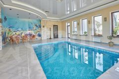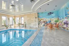 При декорировании зоны отдыха в бассейне и у сауны использовались натуральные фрески.