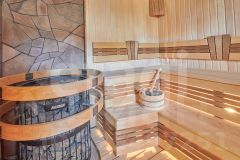 Цокольный этаж: сауна, комната отдыха, спорт зал, прачечная, технические помещения.