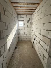По плану - веранда, 3 спальни, санузел, гардеробная, кухня, гостиная, котельная. Также есть газоблоки для постройки гаража. Есть возможность обустройства второго этажа.
