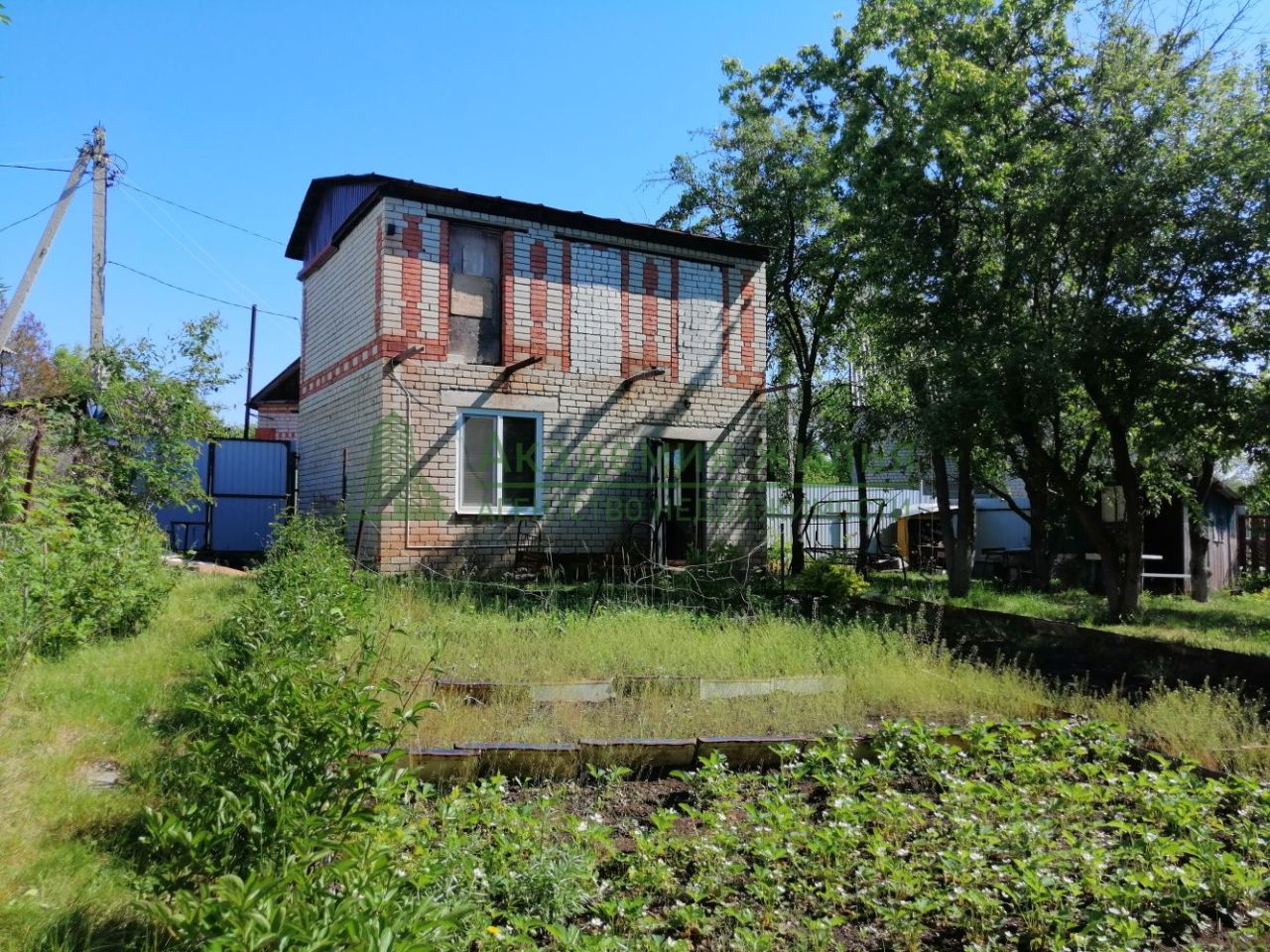 На территории участка имеется 2 этажный кирпичный дом - 56 м2. на 1 этаже - комната и кухня. 2 этаж - без отделки.