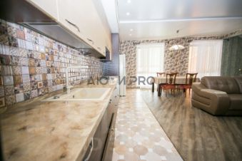 Большое светлое открытое пространство: кухня-гостиная с камином, где собирается вся семья и много места для приёма гостей.