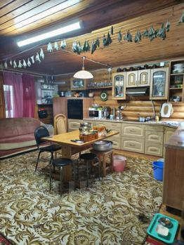 Деревянный дом общей площадью 60 квадратных метров выполнен из экологически чистого материала. Два этажа. На первом этаже кухня-гостинная, санузел. На втором- спальная комната.