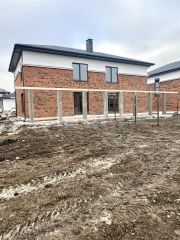 - установлена входная дверь, полное остекление, отмостка