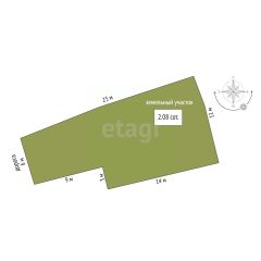 Площадь участка на которой расположен дом - 2,1 сотки земли.