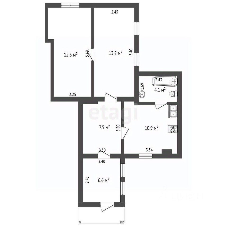 54,8 м²