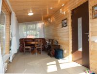 Внутри выполнен солидный ремонт. Напольное покрытие паркет и керамогранит, потолки выровненные и деревянные, с точечным освещением, стены - обои, деревянная и каменная обивка. Окна пластиковые, с установленными коваными решётками. Радиаторы отопления алюминиевые. Удобные лестничные марши с деревянными перилами.Все инженерные коммуникации в отличном, полностью обслуженном состоянии. Крыша - металлочерепица.