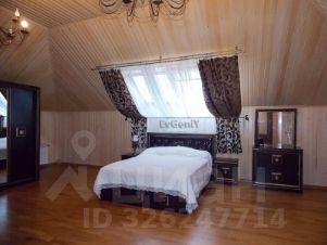 Коттедж имеет площадь 320 кв. м., состоит из двух жилых, а также цокольного и мансардного этажей. На первом этаже - просторная гостиная с кухонной зоной, санузел; на втором этаже - три спальных комнаты, санузел; в цокольном этаже большой зал, топочная, санузел; на мансардном этаже два зала с гардеробной, санузел. Имеется балкон.