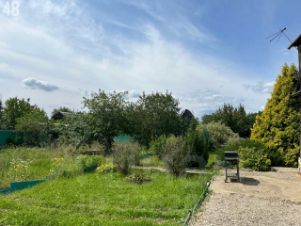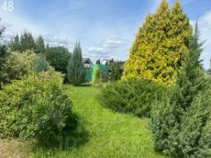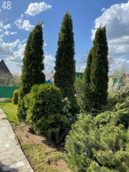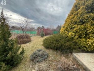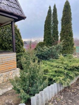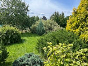 Участок разработан,уложен рулонный газон, растут многолетние декоративные растения, жасмин, атакже множество хвойных деревья (туи, сосны, можжевельник).