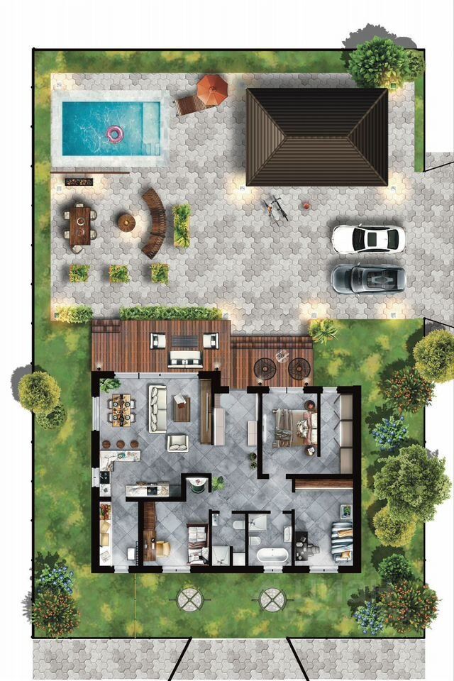 Площадь и форма: 6 соток, форма — правильный прямоугольник 20x30 м. Удобно для планировки и строительства.