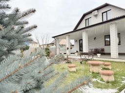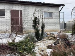 Изюминкой этого дома является ландшафтный дизайн, редкие и дорогие сортовые растения: виноград, клубника, плодовые деревья и кустарники, роза, гортензии, барбарисы, хвойники. Влюбиться в этот дом легко, а разлюбить невозможно.