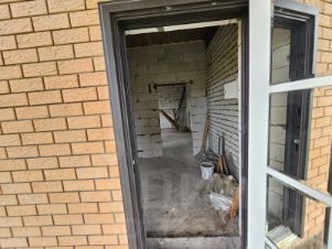 Стены из газосиликатного блока 375 мм + вентиляционный зазор + облицовочный кирпич 120 мм. Фундамент ленточный, глубина 1.5м + 1 метр красного кирпича М200 + плита 20см. Кровля из металлочерепицы. Входная дверь с терморазрывом, окна пластиковые 70 мм с ламинацией.