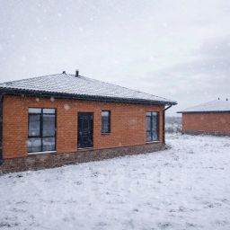 Конструкция дома включает в себя железобетонный фундамент, стены из двойного керамического кирпича с облицовкой фасада кирпичом. Четырехскатная крыша покрыта металлочерепицей.