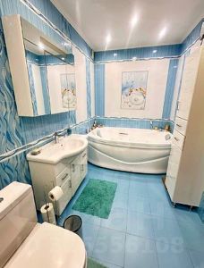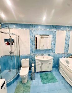 Роскошный совмещенный санузел (8.7 кв.м.) с душевой, джакузи с подсветкой, раковиной, туалетом.