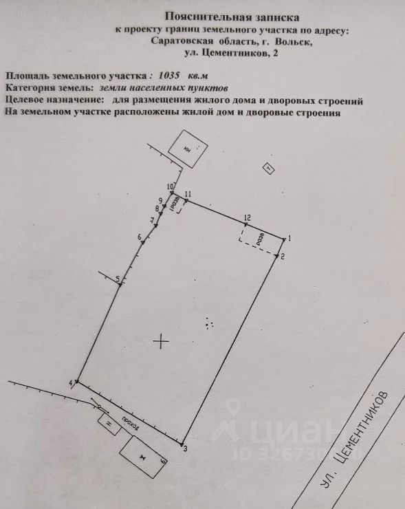 Участок площадью 1035 кв.м, расположенный по адресу: улица Цементников, дом 2.