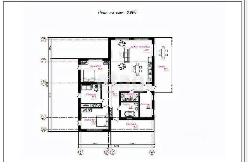 • Три большие спальни, гардероб, большая кухня-гостиная с выходом на террасу, санузел.